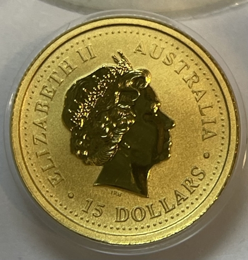 Золотая монета 15 долларов "Год Собаки" 2006 г., Лунный календарь, Австралия, Au 9999, 3,11 г.